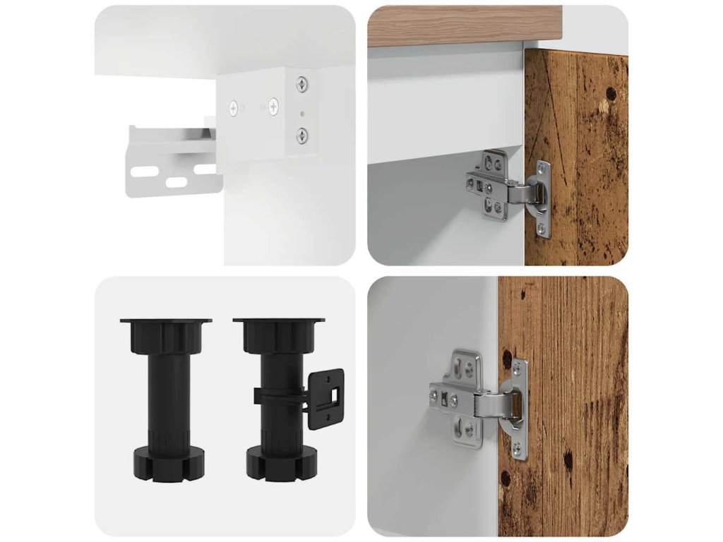 - Nastavitelné nožičky: Spodní skříňky jsou vybaveny nastavitelnými nožičkami, které lze výškově nastavit tak, aby vyhovovaly uspořádání vaší kuchyně.
