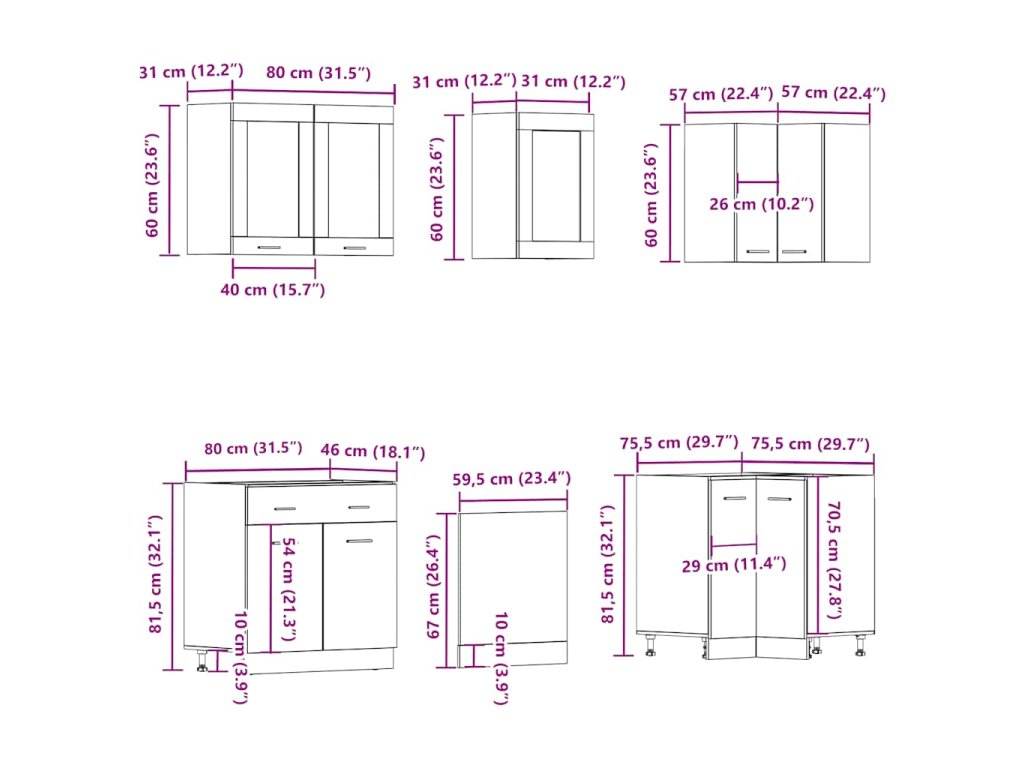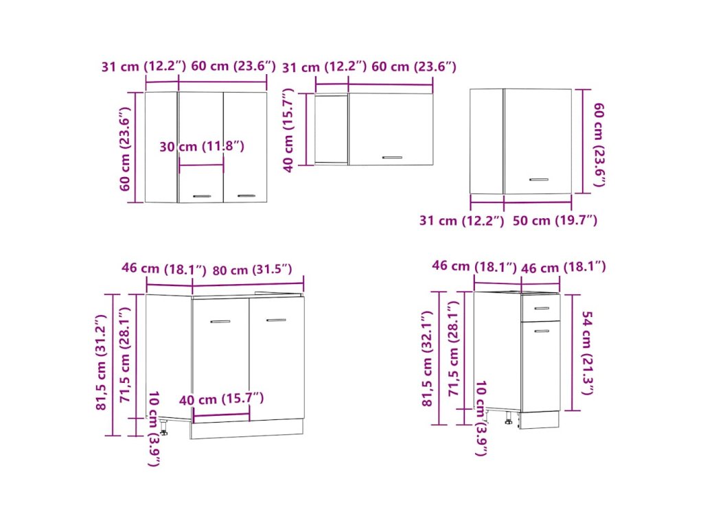 - 1 x Skříňka pod dřez: 80 x 46 x 81,5 cm (Š x H x V)