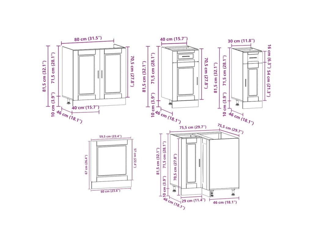 - 1 x kuchyňská rohová spodní skříňka: 75,5 x 75,5 x 81,5 cm (Š x H x V)
