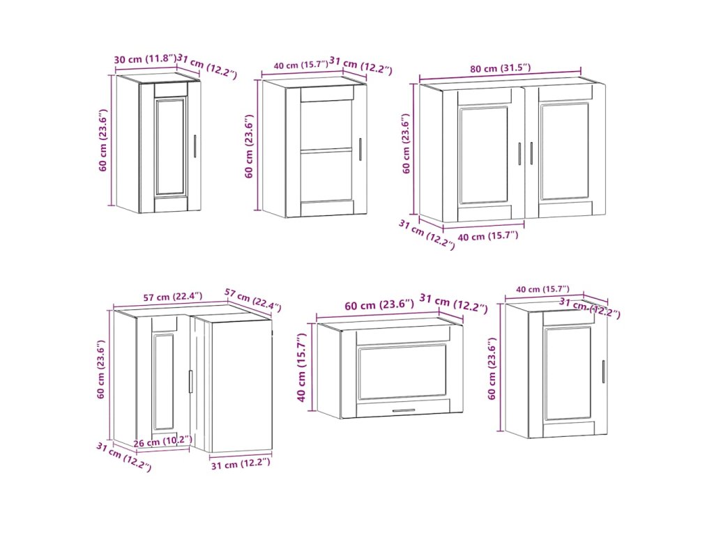 - 1 x kuchyňská nástěnná skříňka: 80 x 31 x 60 cm (Š x H x V)