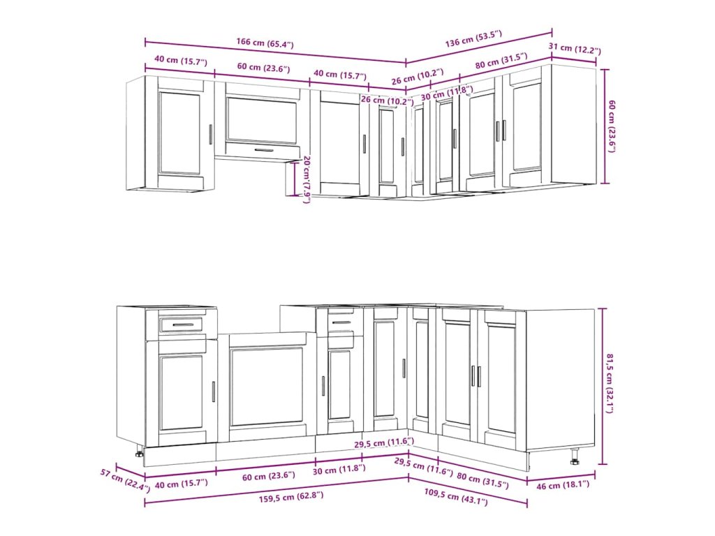 - Dostatek úložného prostoru: Sada kuchyňských skříněk má mnoho přihrádek a nabízí dostatek prostoru pro uložení misek, talířů, hrnců a dalších kuchyňských spotřebičů.