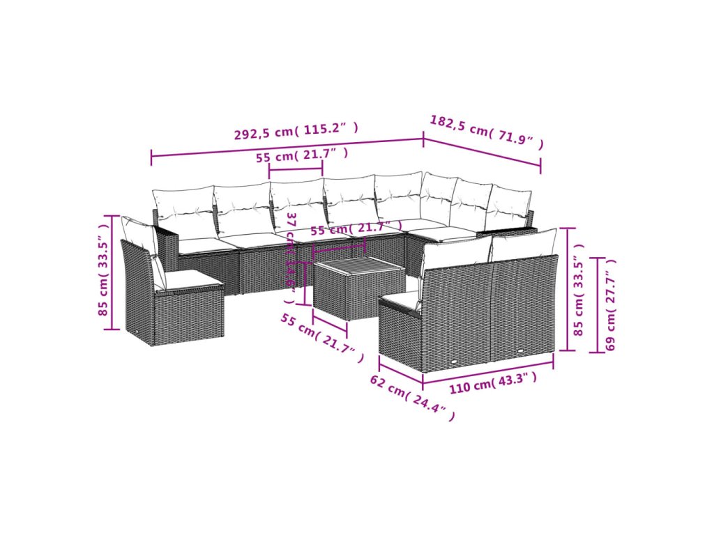 Tato zahradní sedací souprava je dokonalým doplňkem vaší zahrady, terasy nebo dvorku a poskytne vám pohodlné a příjemné místo, kde si můžete povídat s rodinou a přáteli nebo jen tak odpočívat a užívat si pobyt venku.