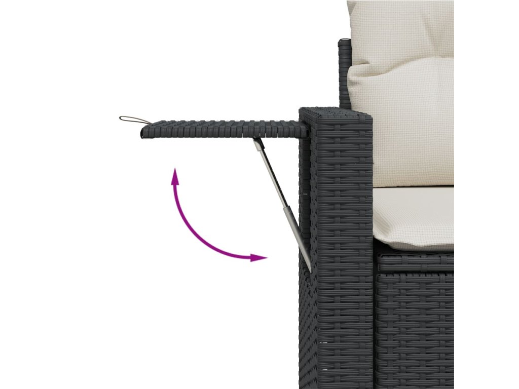 - Pohodlný odkládací stolek: Tento venkovní nábytek má na područkách skládací stolek s plynovou pružinou, jež poskytuje praktické místo pro vaše nezbytnosti, kde je budete mít na dosah ruky.