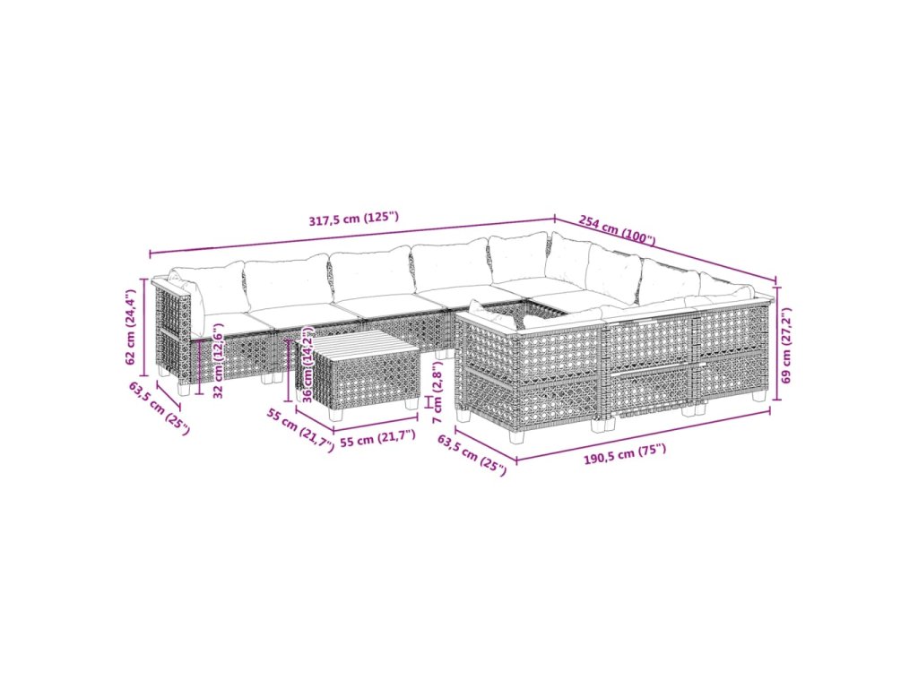 Tato zahradní sedací souprava je dokonalým doplňkem vaší zahrady, terasy nebo dvorku a poskytne vám pohodlné a příjemné místo, kde si můžete povídat s rodinou a přáteli nebo jen tak odpočívat a užívat si pobyt venku.