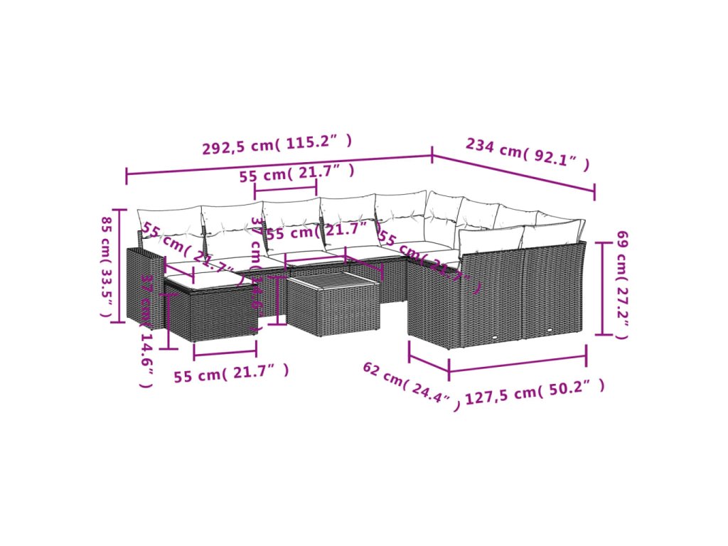 Tato zahradní sedací souprava je dokonalým doplňkem vaší zahrady, terasy nebo dvorku a poskytne vám pohodlné a příjemné místo, kde si můžete povídat s rodinou a přáteli nebo jen tak odpočívat a užívat si pobyt venku.