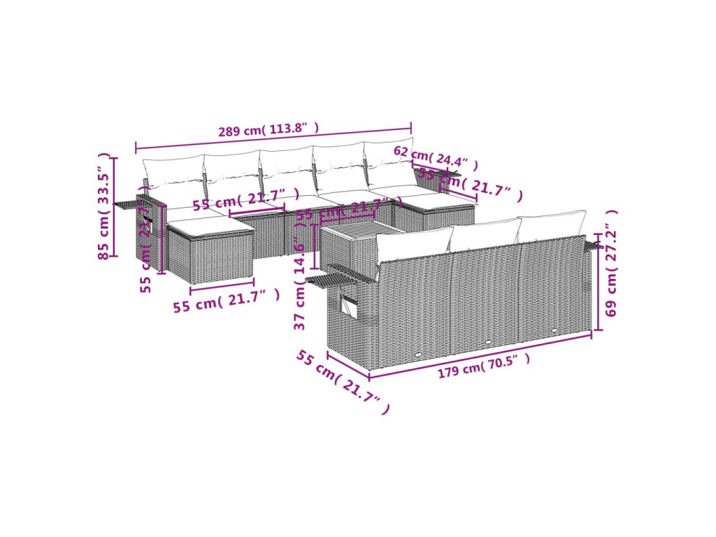 Tato zahradní sedací souprava je dokonalým doplňkem vaší zahrady, terasy nebo dvorku a poskytne vám pohodlné a příjemné místo, kde si můžete povídat s rodinou a přáteli nebo jen tak odpočívat a užívat si pobyt venku.