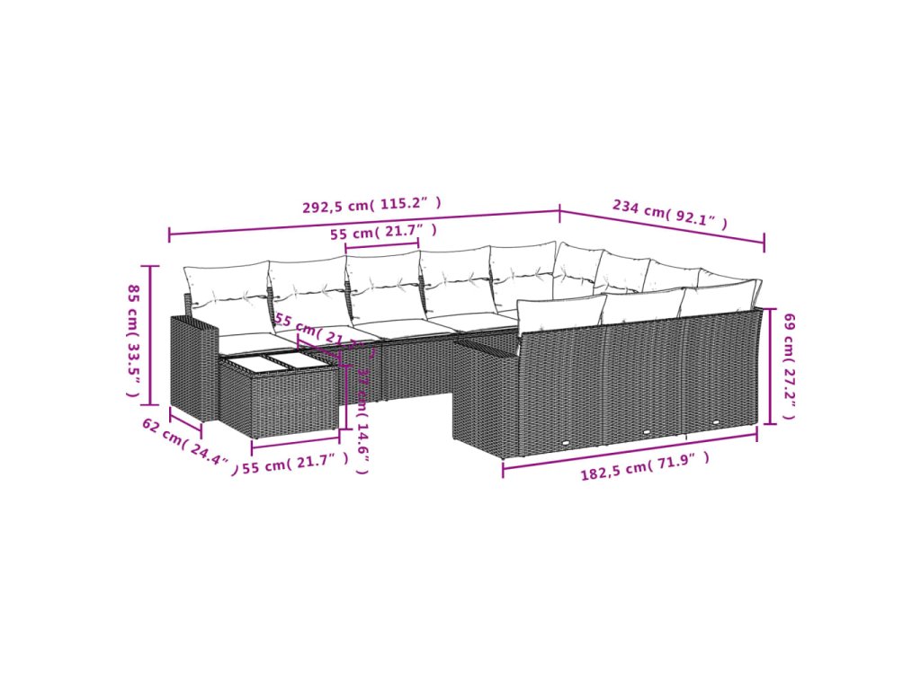 Tato zahradní sedací souprava je dokonalým doplňkem vaší zahrady, terasy nebo dvorku a poskytne vám pohodlné a příjemné místo, kde si můžete povídat s rodinou a přáteli nebo jen tak odpočívat a užívat si pobyt venku.