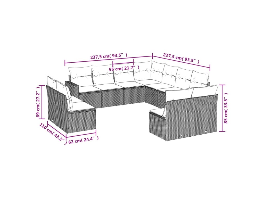 Tato zahradní sedací souprava je dokonalým doplňkem vaší zahrady, terasy nebo dvorku a poskytne vám pohodlné a příjemné místo, kde si můžete povídat s rodinou a přáteli nebo jen tak odpočívat a užívat si pobyt venku.