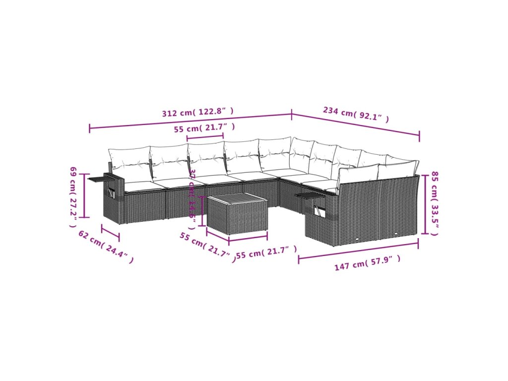 Tato zahradní sedací souprava je dokonalým doplňkem vaší zahrady, terasy nebo dvorku a poskytne vám pohodlné a příjemné místo, kde si můžete povídat s rodinou a přáteli nebo jen tak odpočívat a užívat si pobyt venku.