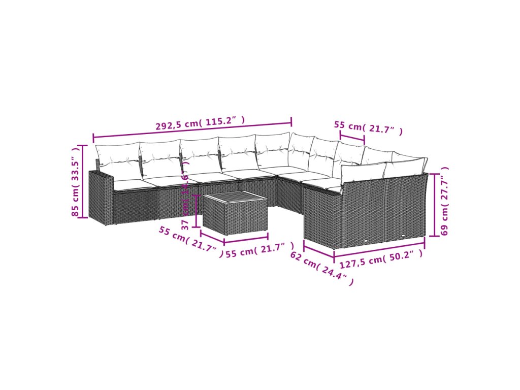 Tato zahradní sedací souprava je dokonalým doplňkem vaší zahrady, terasy nebo dvorku a poskytne vám pohodlné a příjemné místo, kde si můžete povídat s rodinou a přáteli nebo jen tak odpočívat a užívat si pobyt venku.