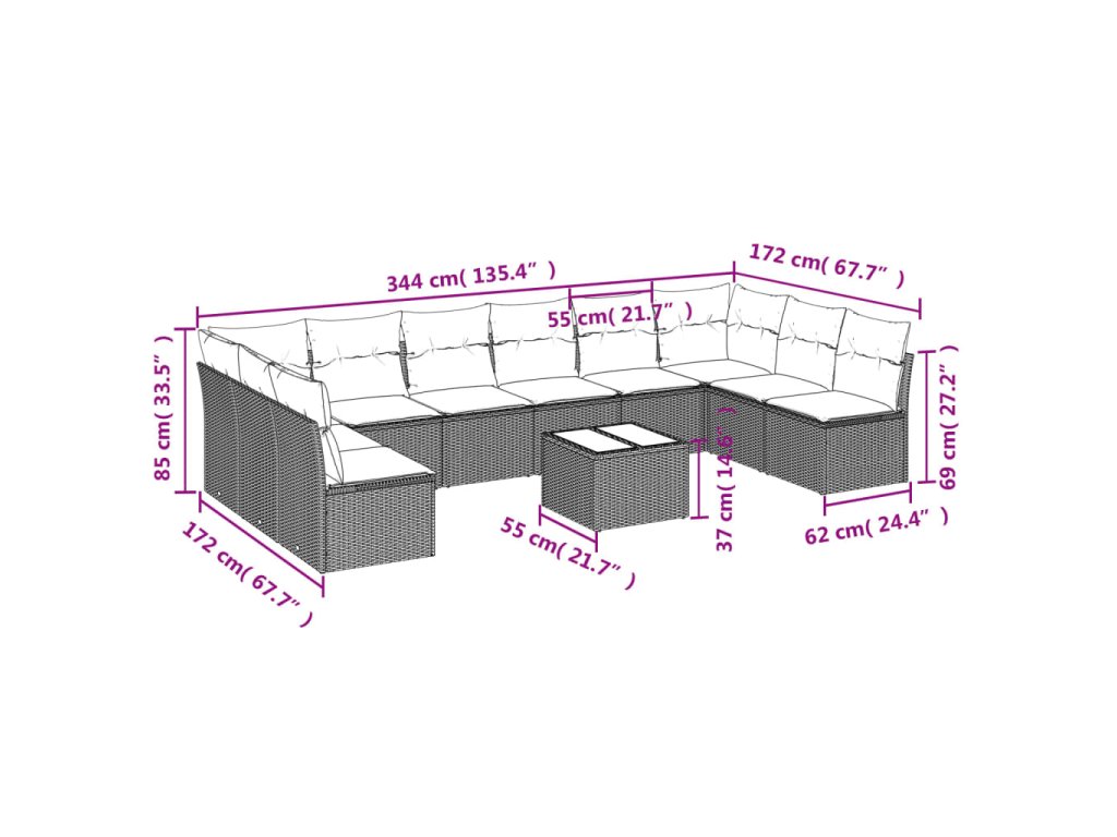 Tato zahradní sedací souprava je dokonalým doplňkem vaší zahrady, terasy nebo dvorku a poskytne vám pohodlné a příjemné místo, kde si můžete povídat s rodinou a přáteli nebo jen tak odpočívat a užívat si pobyt venku.