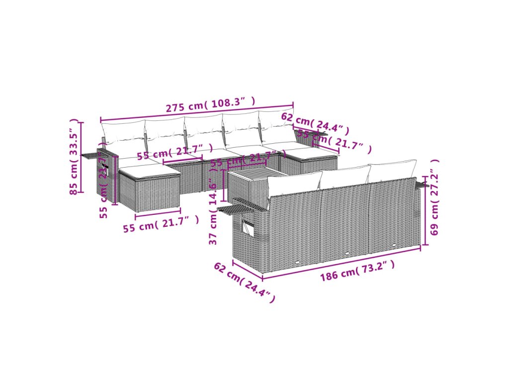 Tato zahradní sedací souprava je dokonalým doplňkem vaší zahrady, terasy nebo dvorku a poskytne vám pohodlné a příjemné místo, kde si můžete povídat s rodinou a přáteli nebo jen tak odpočívat a užívat si pobyt venku.