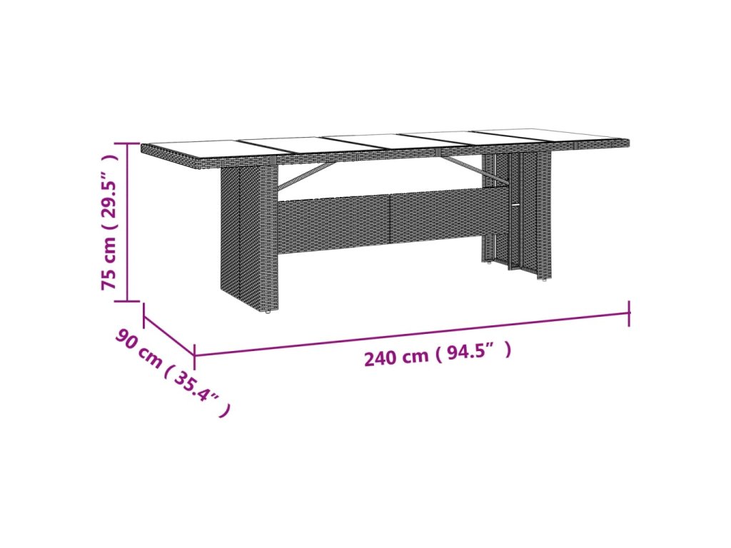 - Skleněná deska stolu: Deska venkovního stolu je zhotovena ze silného a odolného tvrzeného skla, takže ji snadno očistíte vlhkým hadříkem a zároveň do vašeho venkovního prostoru vnese nádech elegance.