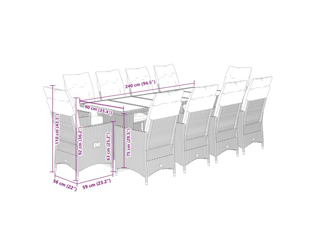 - Rozměry: 240 x 90 x 75 cm (D x Š x V)