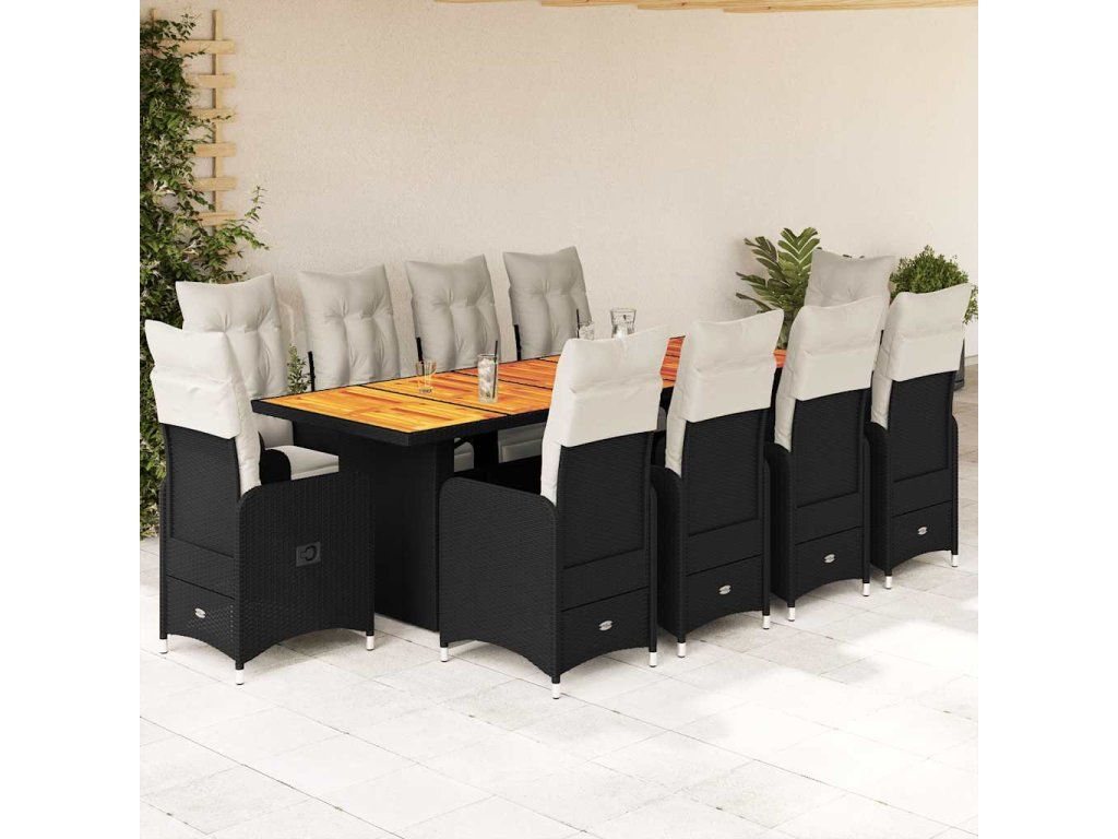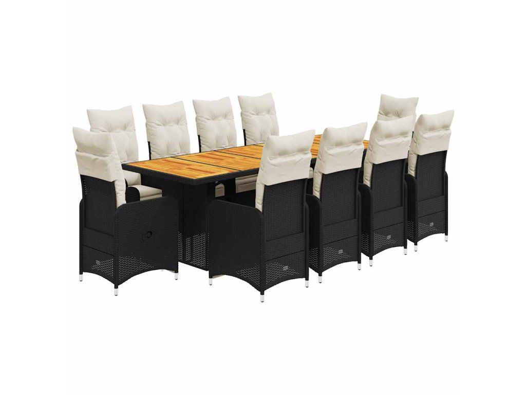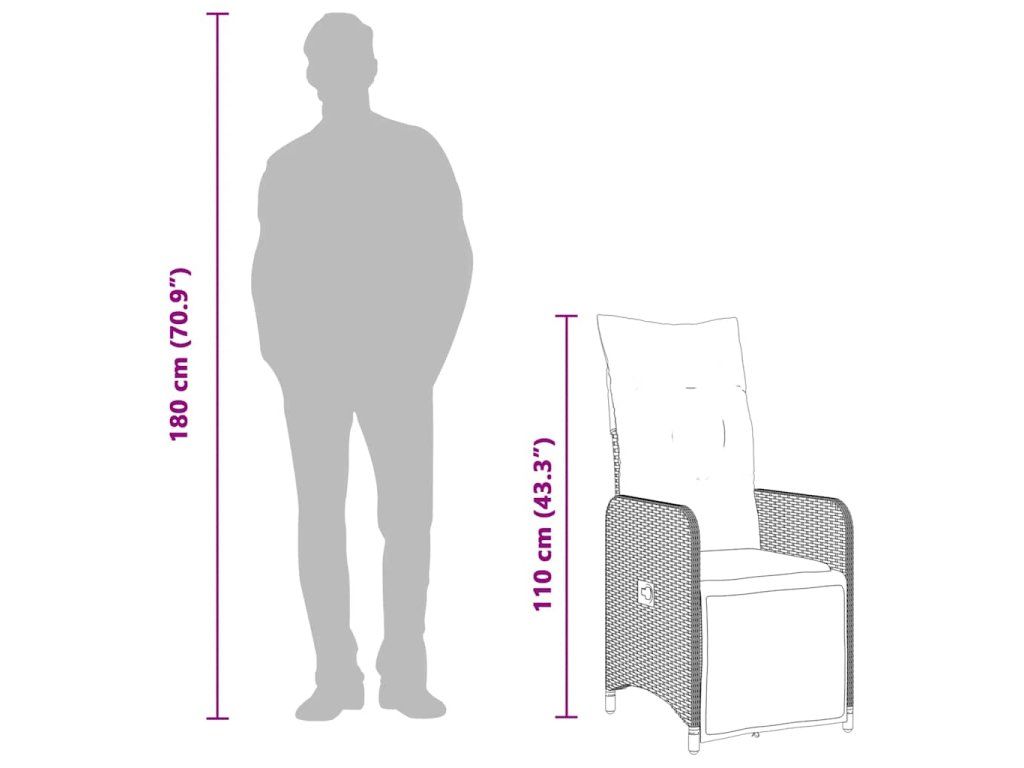 - Materiál: PE ratan, práškově lakovaná ocel, masivní akáciové dřevo s olejovou povrchovou úpravou
