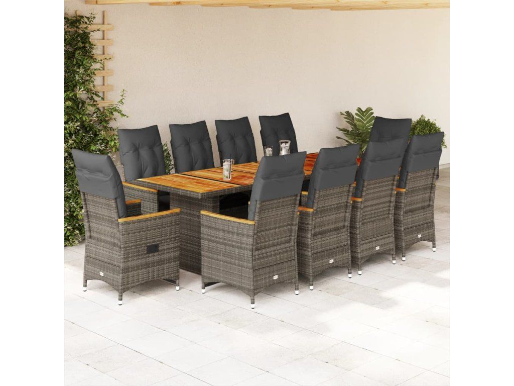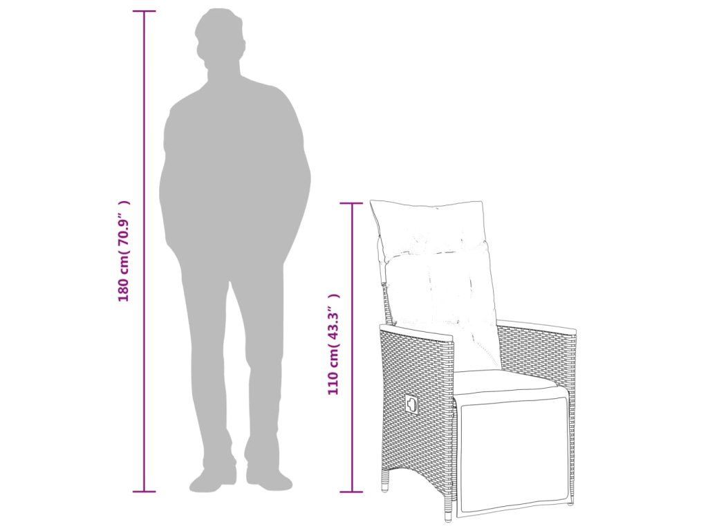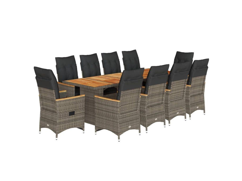 - Materiál: PE ratan, práškově lakovaná ocel, masivní akáciové dřevo s olejovou povrchovou úpravou
