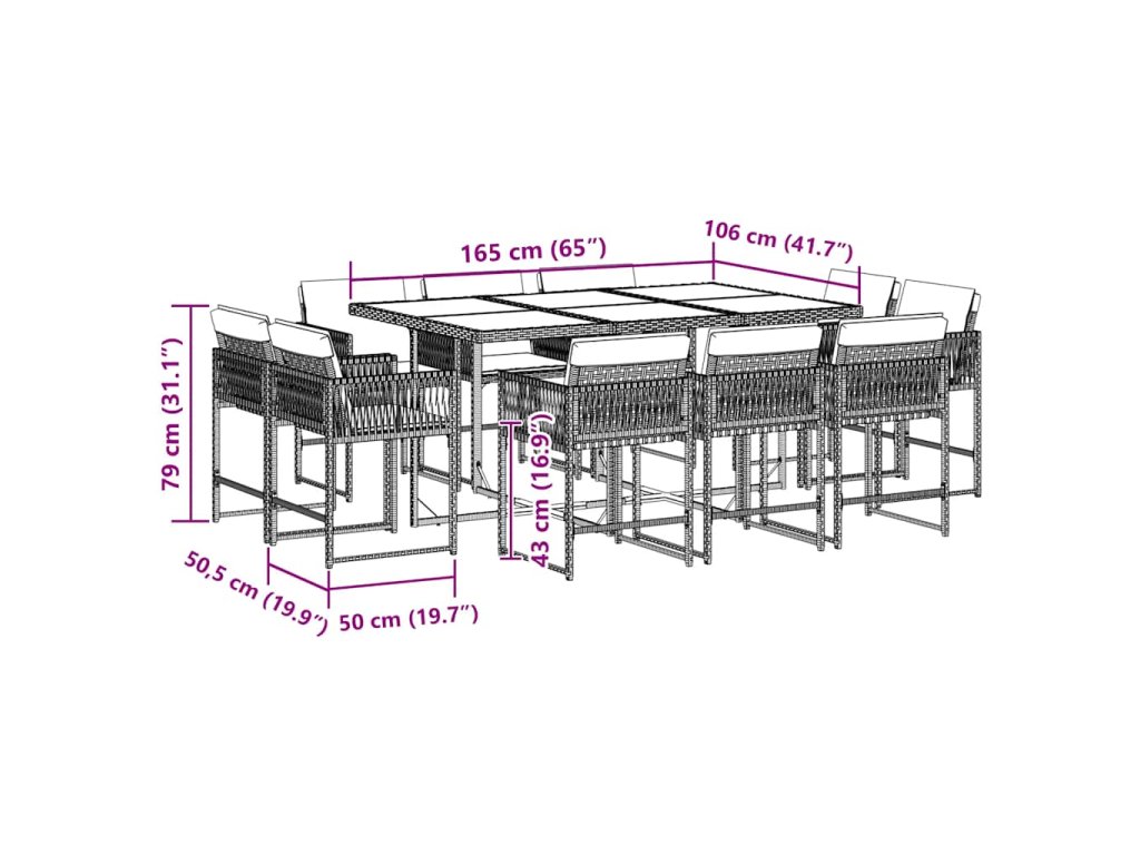 - Materiál: PE ratan, práškově lakovaná ocel, masivní akáciové dřevo