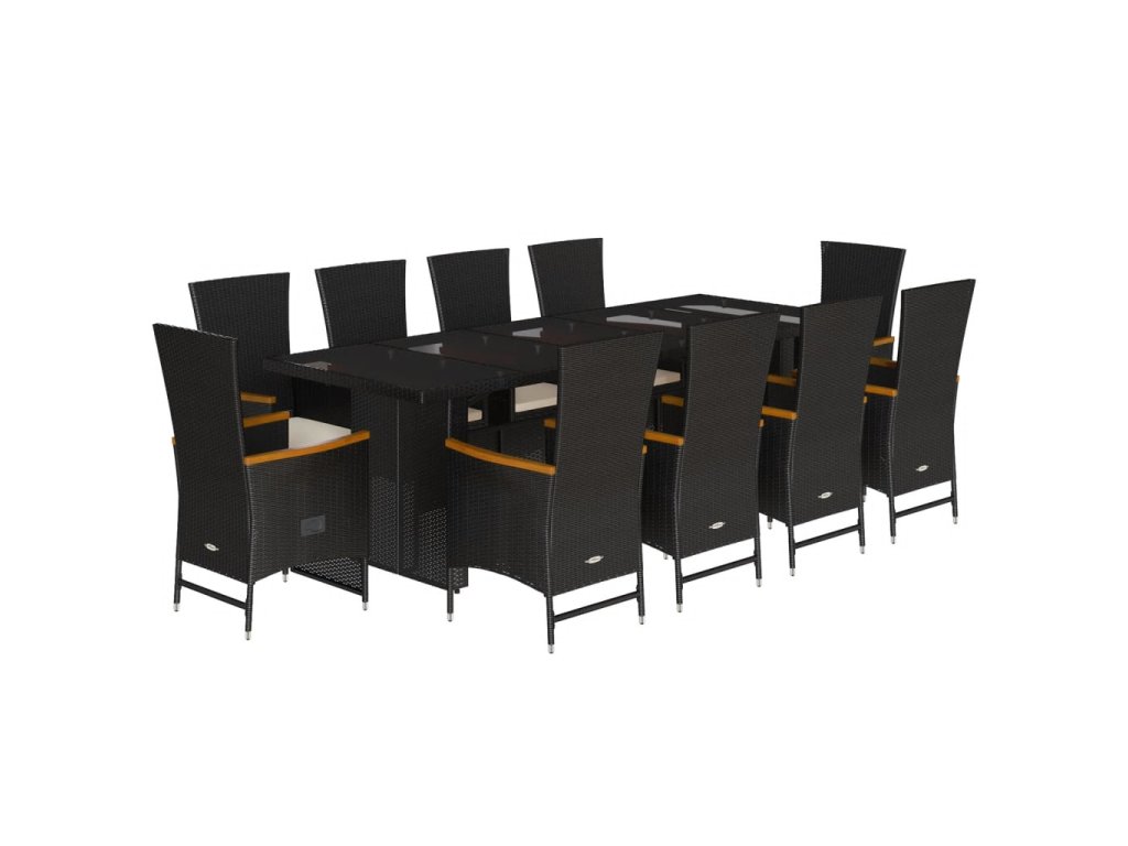 - Materiál: PE ratan, práškově lakovaná ocel, masivní akáciové dřevo s olejovou povrchovou úpravou