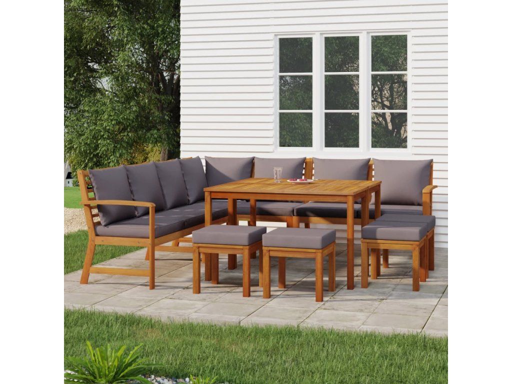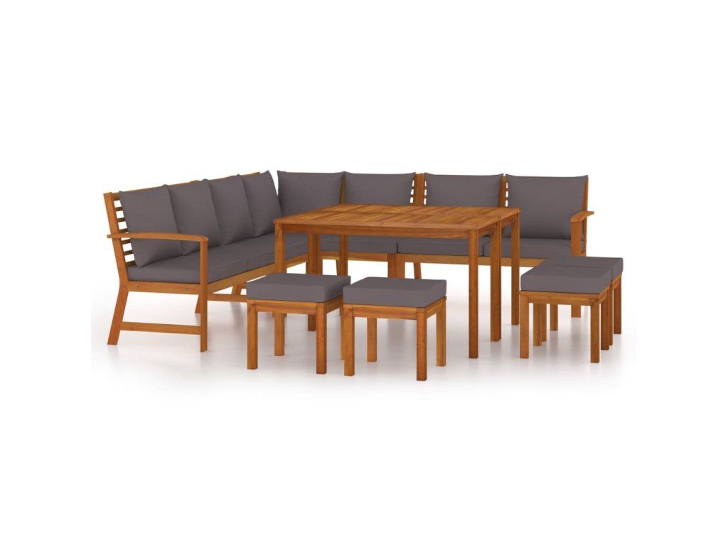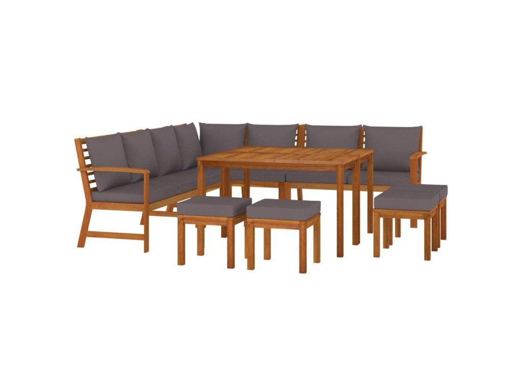 Tento dřevěný zahradní jídelní set s poduškami se pyšní nadčasovým designem a na vaši terasu, verandu či zahradu vnese nádech rustikálního kouzla.
