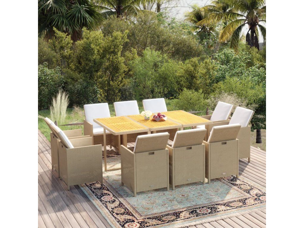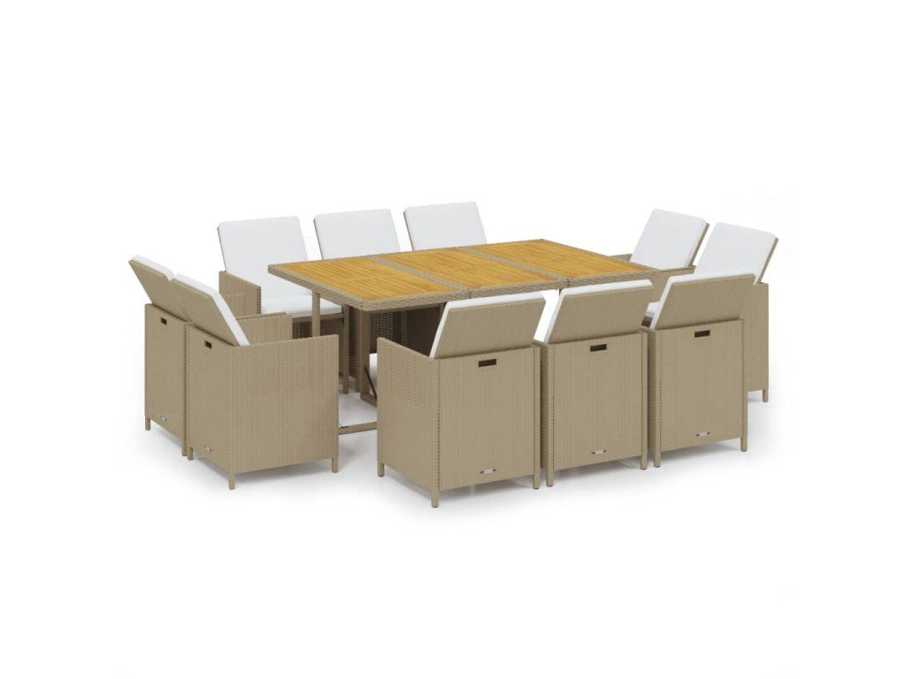 - Materiál: PE ratan, práškově lakovaná ocel, masivní akáciové dřevo s přírodní olejovou povrchovou úpravou