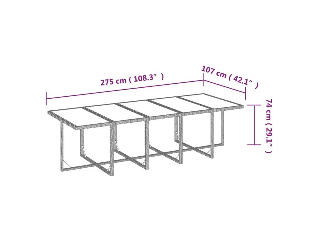 - Celkové rozměry stolu: 275 x 107 x 74 cm (D x Š x V)