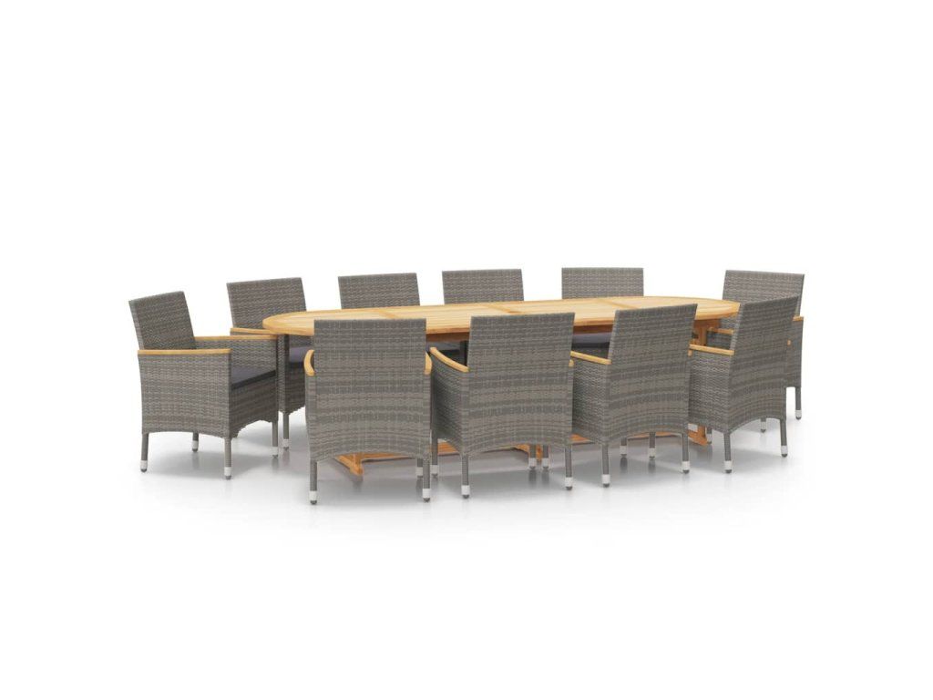 - Materiál: PE ratan, práškově lakovaná ocel, masivní akáciové dřevo s olejovou povrchovou úpravou