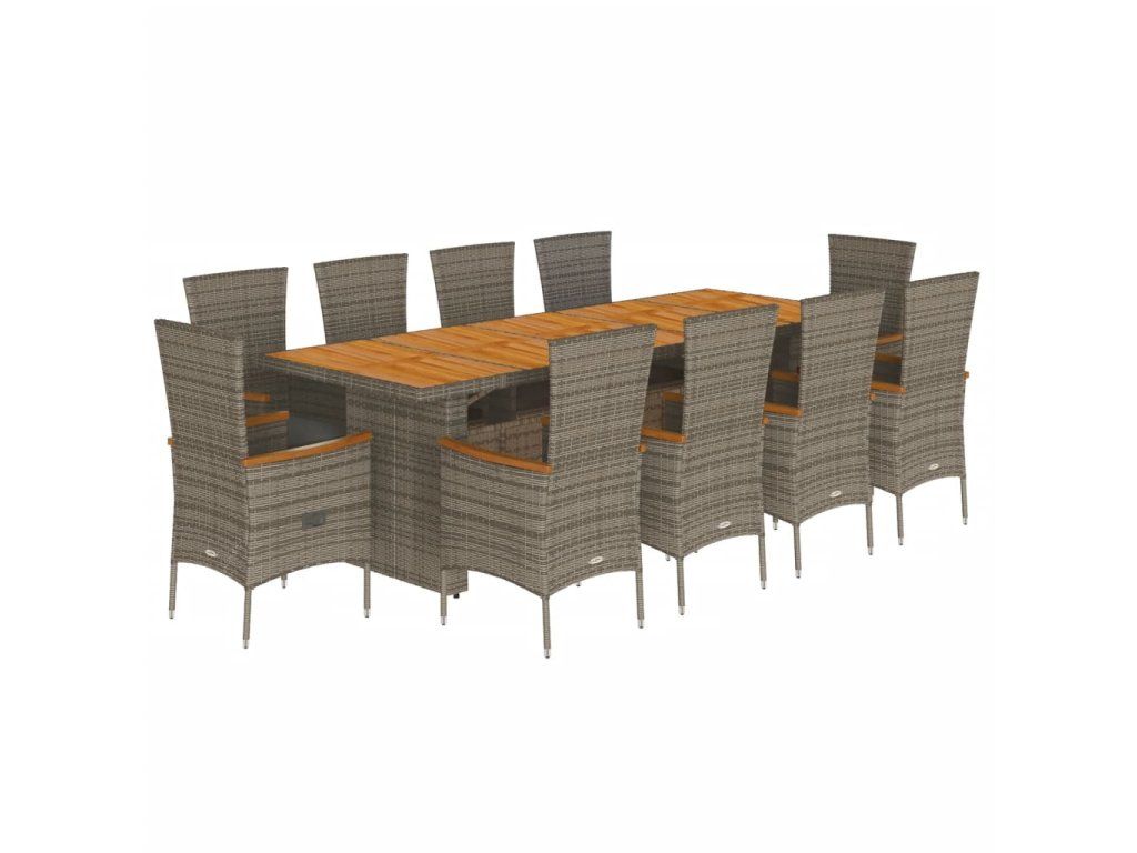 - Materiál: PE ratan, práškově lakovaná ocel, masivní akáciové dřevo s olejovou povrchovou úpravou