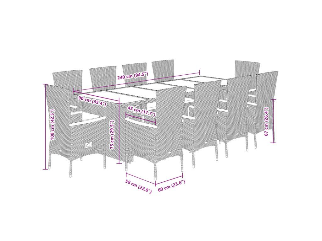 - Rozměry: 240 x 90 x 75 cm (D x Š x V)