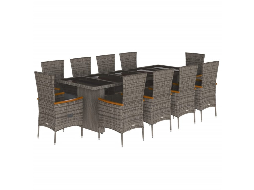 - Materiál: PE ratan, práškově lakovaná ocel, masivní akáciové dřevo s olejovou povrchovou úpravou