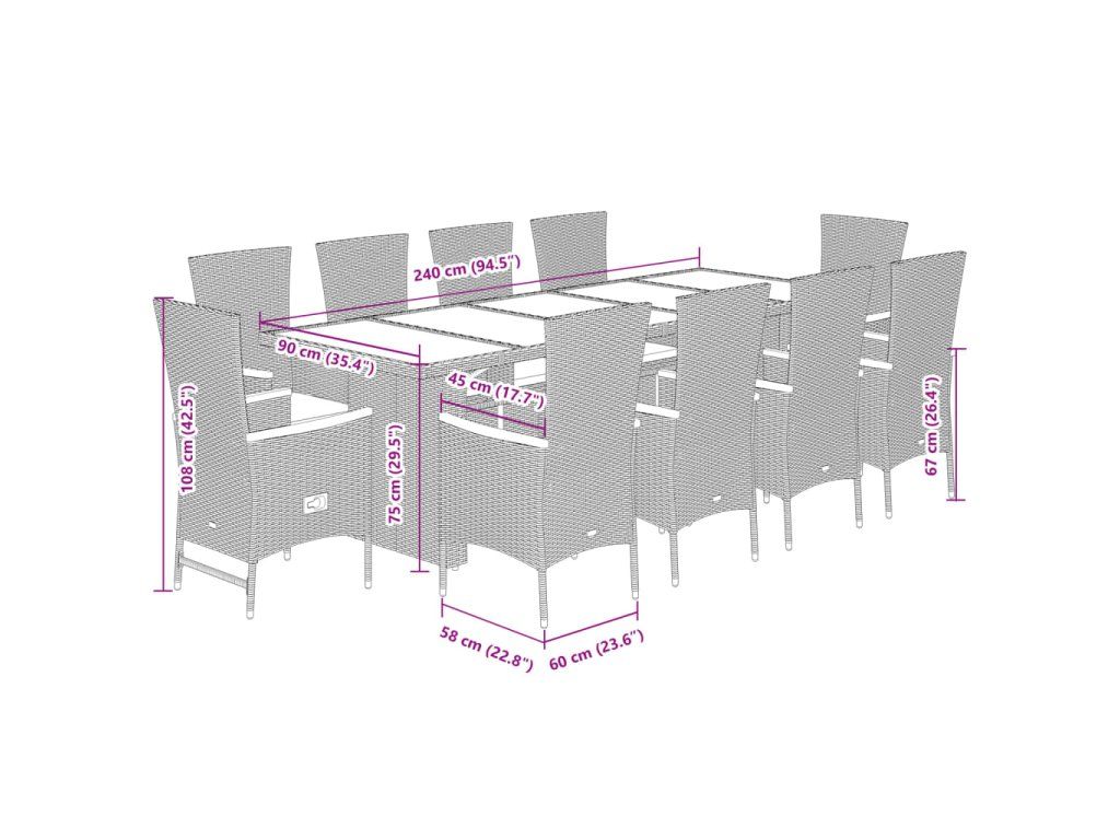 - Materiál: PE ratan, práškově lakovaná ocel, masivní akáciové dřevo s olejovou povrchovou úpravou
