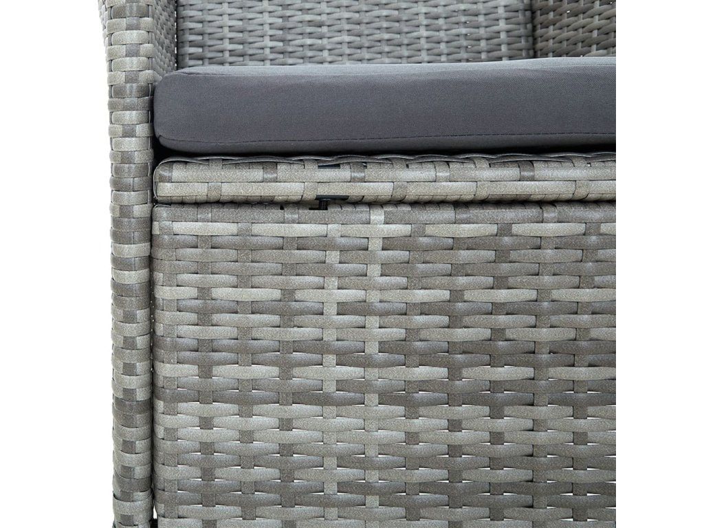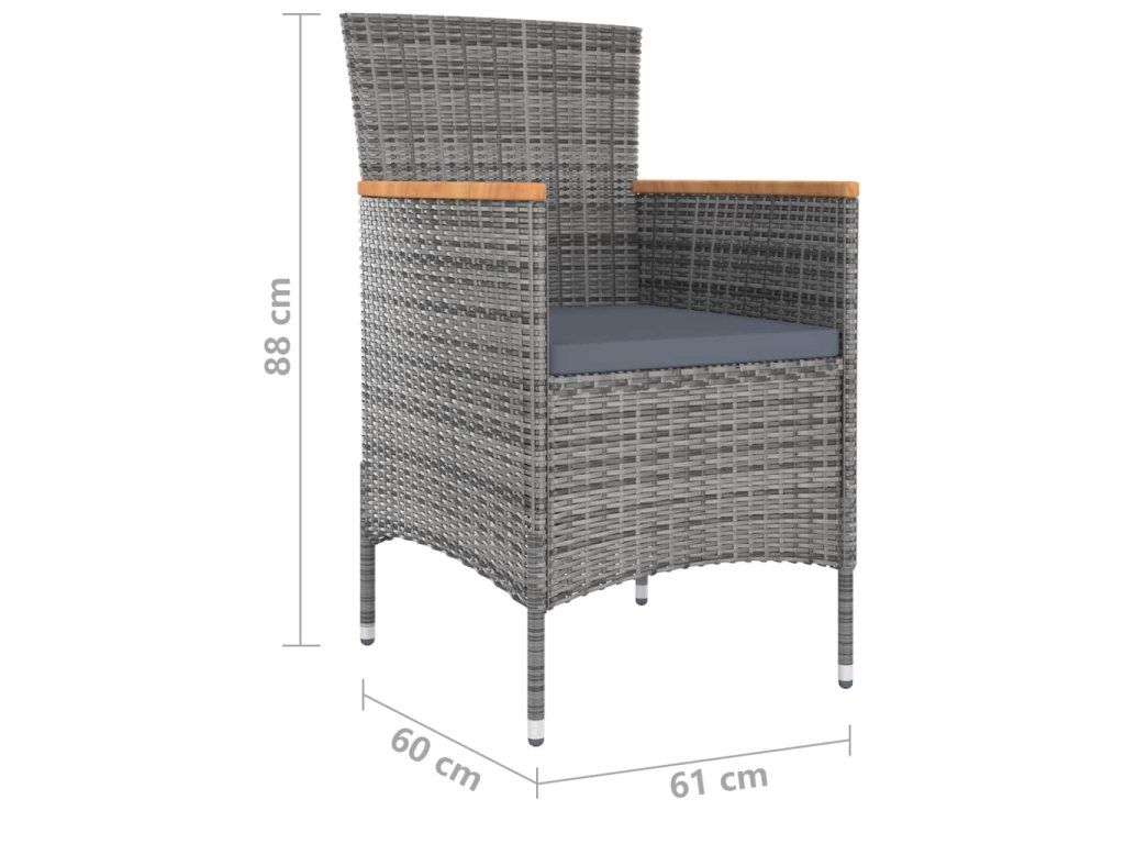 - Materiál: PE ratan, práškově lakovaná ocel, masivní akáciové dřevo s olejovou povrchovou úpravou