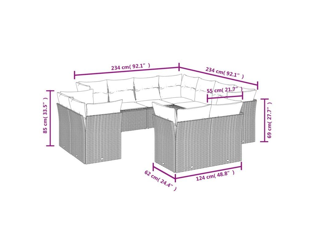 Tato zahradní sedací souprava je dokonalým doplňkem vaší zahrady, terasy nebo dvorku a poskytne vám pohodlné a příjemné místo, kde si můžete povídat s rodinou a přáteli nebo jen tak odpočívat a užívat si pobyt venku.