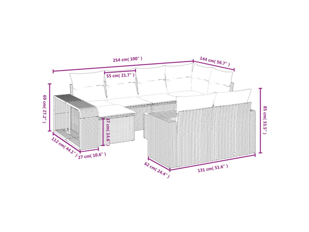 Tato zahradní sedací souprava je dokonalým doplňkem vaší zahrady, terasy nebo dvorku a poskytne vám pohodlné a příjemné místo, kde si můžete povídat s rodinou a přáteli nebo jen tak odpočívat a užívat si pobyt venku.