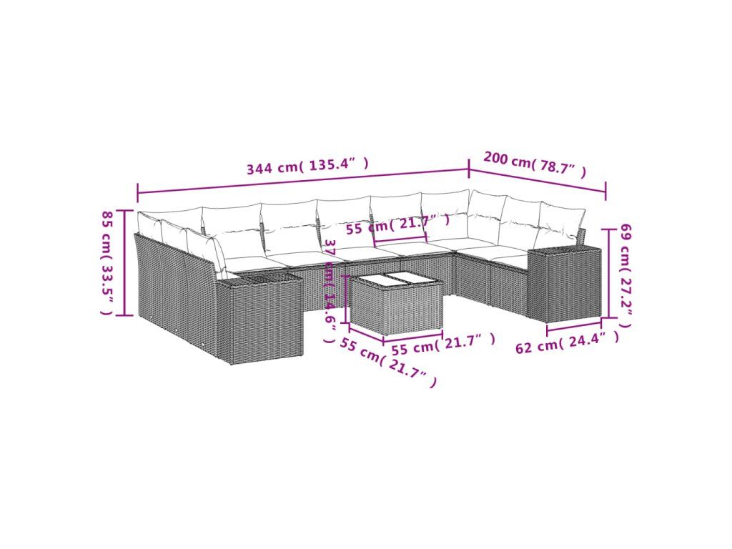 Tato zahradní sedací souprava je dokonalým doplňkem vaší zahrady, terasy nebo dvorku a poskytne vám pohodlné a příjemné místo, kde si můžete povídat s rodinou a přáteli nebo jen tak odpočívat a užívat si pobyt venku.