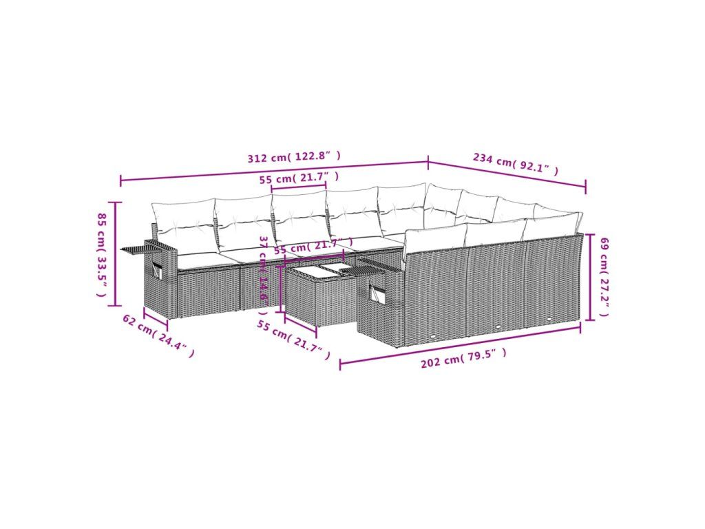Tato zahradní sedací souprava je dokonalým doplňkem vaší zahrady, terasy nebo dvorku a poskytne vám pohodlné a příjemné místo, kde si můžete povídat s rodinou a přáteli nebo jen tak odpočívat a užívat si pobyt venku.
