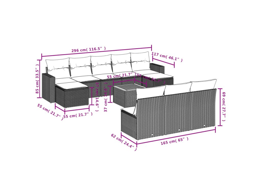 Tato zahradní sedací souprava je dokonalým doplňkem vaší zahrady, terasy nebo dvorku a poskytne vám pohodlné a příjemné místo, kde si můžete povídat s rodinou a přáteli nebo jen tak odpočívat a užívat si pobyt venku.