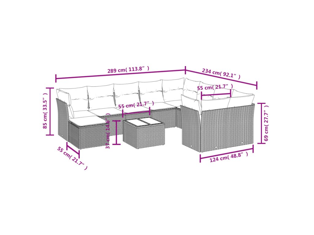 Tato zahradní sedací souprava je dokonalým doplňkem vaší zahrady, terasy nebo dvorku a poskytne vám pohodlné a příjemné místo, kde si můžete povídat s rodinou a přáteli nebo jen tak odpočívat a užívat si pobyt venku.