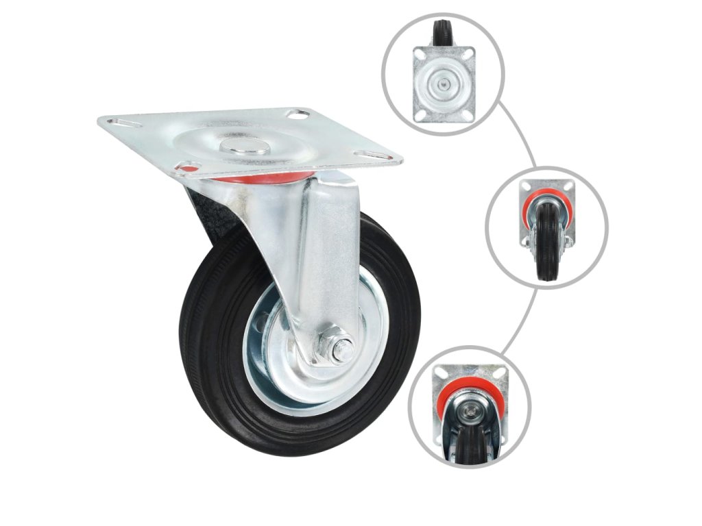Kolečka jsou vyrobená z gumy, která je známá pro svou schopnost pohlcovat nárazy a vibrace. Ať už tedy kolečka namontujete na cokoliv, budete to moci přesouvat hladce a v tichosti. Jejich hladký povrch navíc ochrání vaši podlahu před poškrábáním. Zinkem potažený ocelový rám je odolný proti rzi, a tudíž kolečkům dodává na odolnosti a prodlužuje jejich životnost. Polovina těchto otočných koleček je vybavená dvojitou brzdou pro flexibilnější ovládání. Každé kolečko má maximální nosnost až 70 kg.