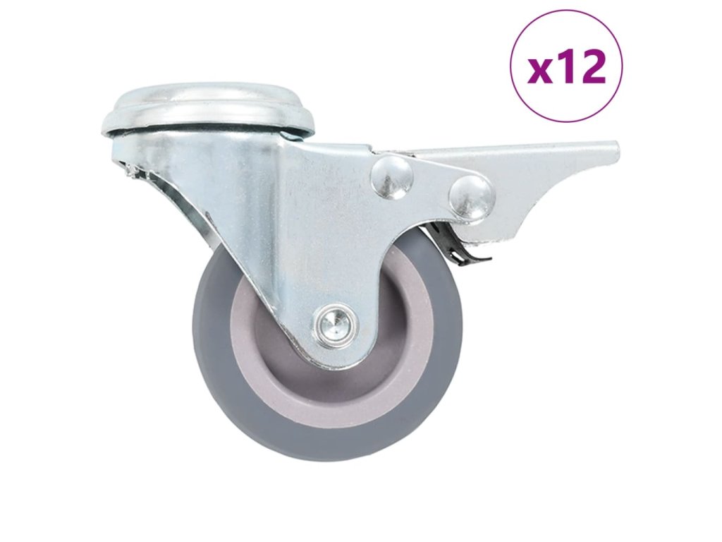 - Balení obsahuje 12 otočných koleček s otvorem pro šroub. Polovina koleček je vybavená brzdou.