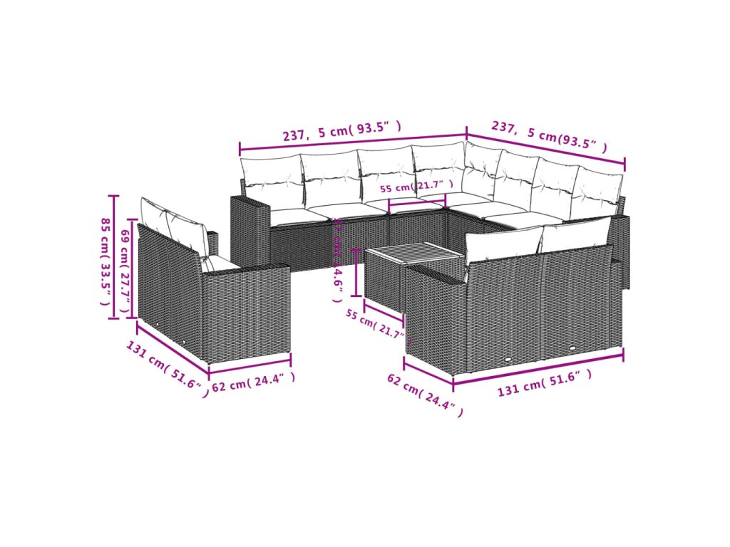 Tato zahradní sedací souprava je dokonalým doplňkem vaší zahrady, terasy nebo dvorku a poskytne vám pohodlné a příjemné místo, kde si můžete povídat s rodinou a přáteli nebo jen tak odpočívat a užívat si pobyt venku.