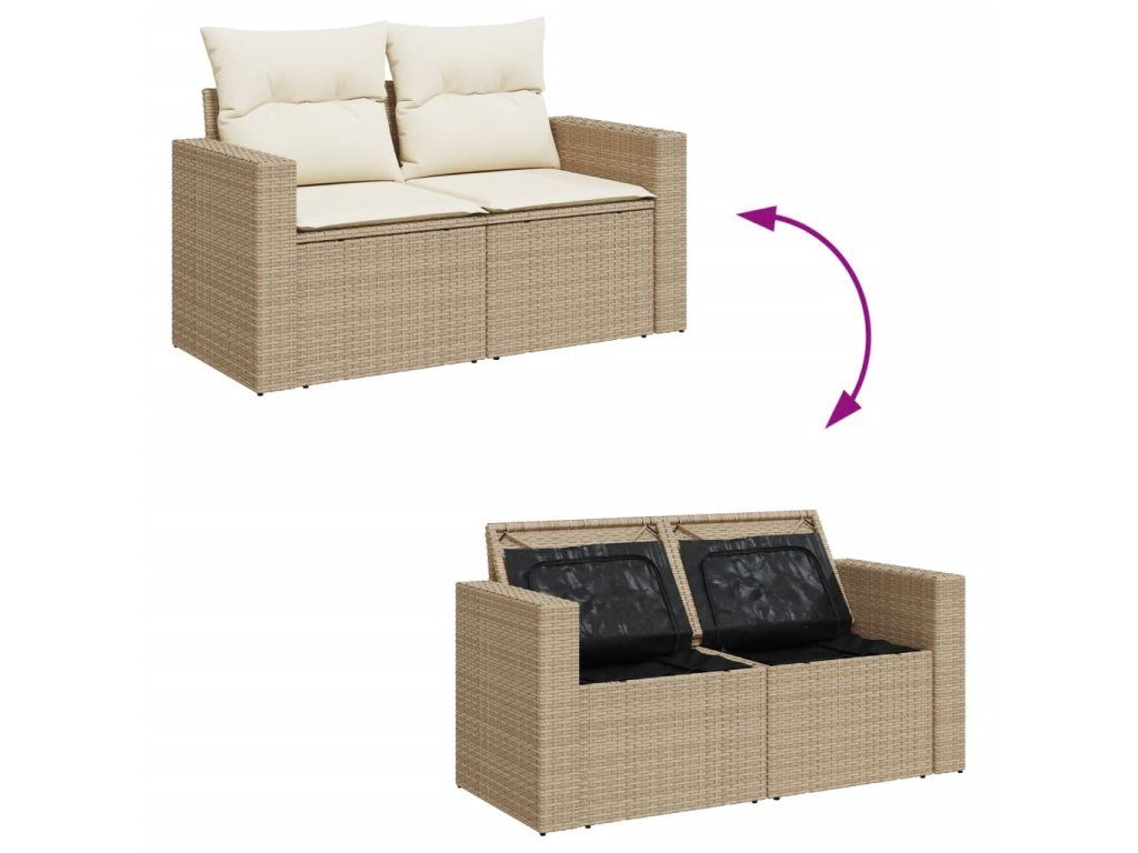 - Úložný prostor s voděodolným vakem: Každý zahradní sedací díl má úložný prostor pod sedákem, který je opatřen voděodolnou vložkou a poslouží vám k ukládání podušek, hraček a dalších věcí. Vnitřní vaky mají horní kryt a lze je bezpečně připevnit k sedákům pomocí suchého zipu, což zaručí větší stabilitu.