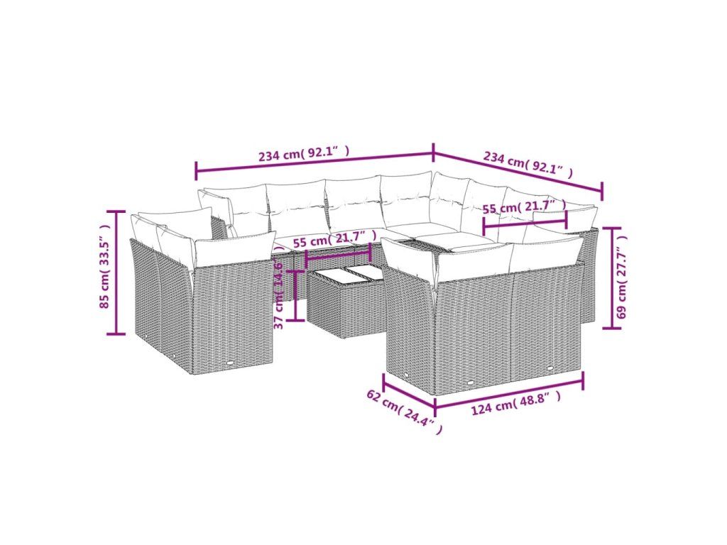 Tato zahradní sedací souprava je dokonalým doplňkem vaší zahrady, terasy nebo dvorku a poskytne vám pohodlné a příjemné místo, kde si můžete povídat s rodinou a přáteli nebo jen tak odpočívat a užívat si pobyt venku.
