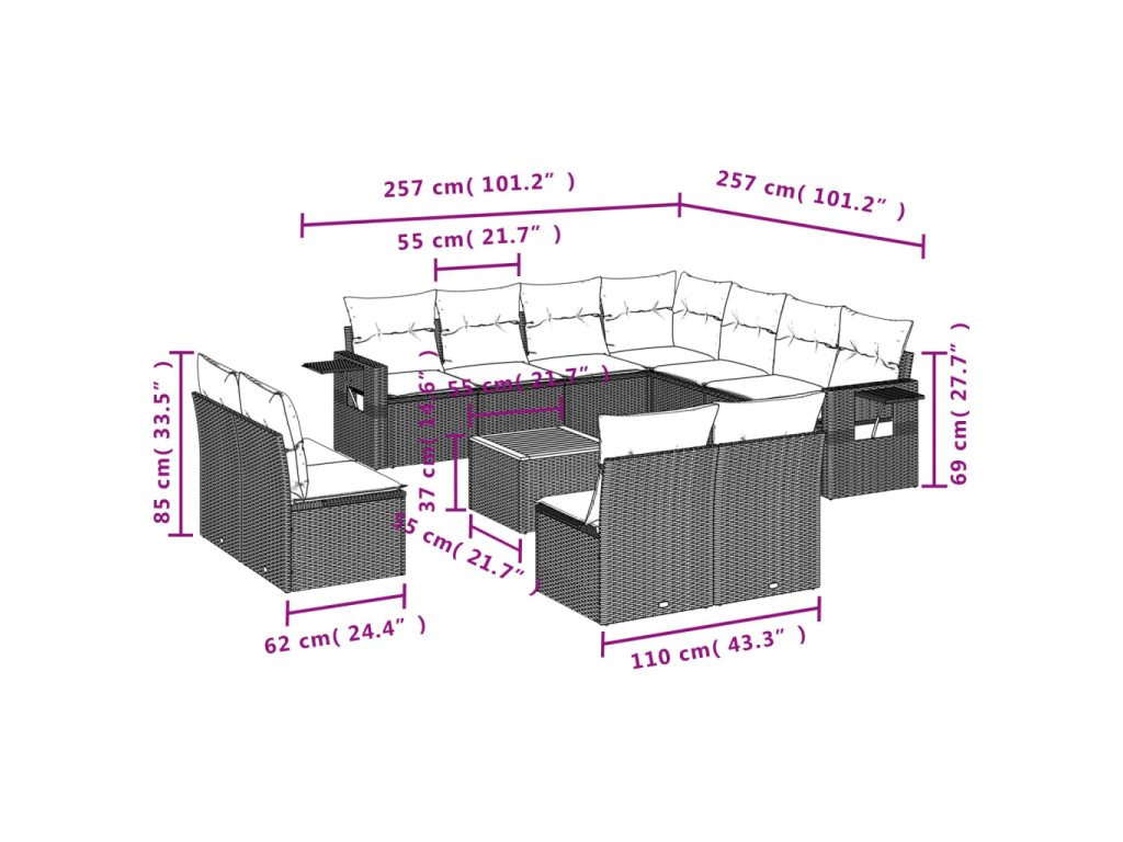 Tato zahradní sedací souprava je dokonalým doplňkem vaší zahrady, terasy nebo dvorku a poskytne vám pohodlné a příjemné místo, kde si můžete povídat s rodinou a přáteli nebo jen tak odpočívat a užívat si pobyt venku.