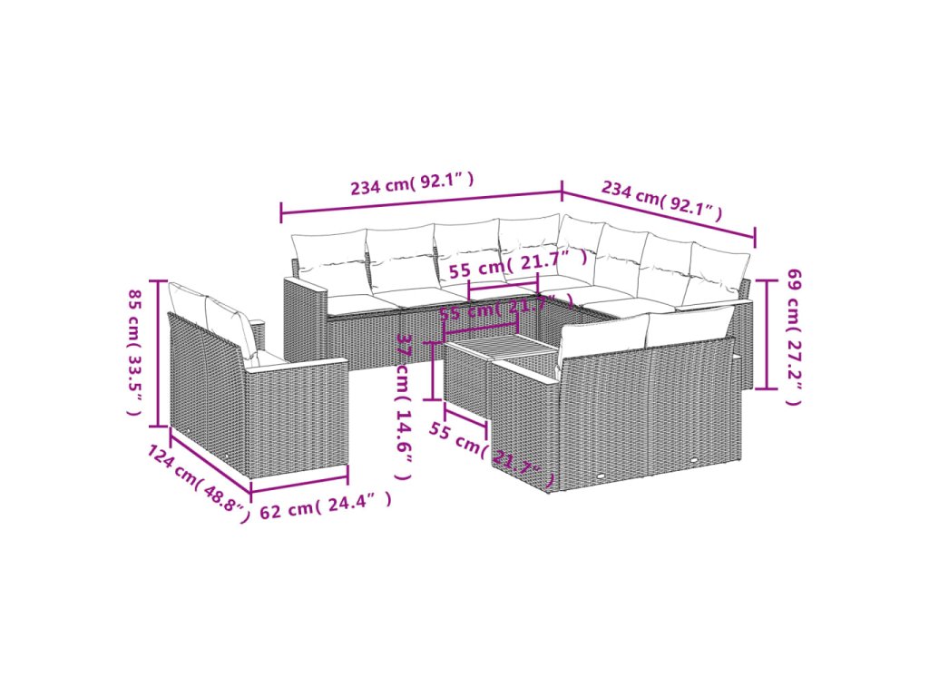 Tato zahradní sedací souprava je dokonalým doplňkem vaší zahrady, terasy nebo dvorku a poskytne vám pohodlné a příjemné místo, kde si můžete povídat s rodinou a přáteli nebo jen tak odpočívat a užívat si pobyt venku.