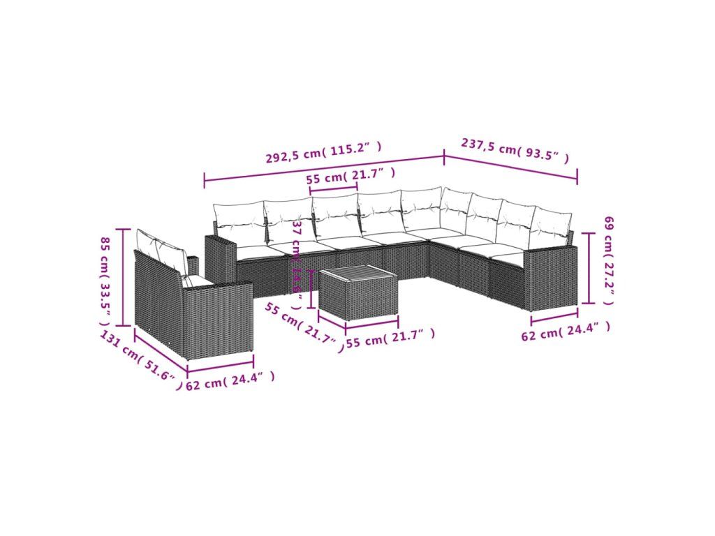 Tato zahradní sedací souprava je dokonalým doplňkem vaší zahrady, terasy nebo dvorku a poskytne vám pohodlné a příjemné místo, kde si můžete povídat s rodinou a přáteli nebo jen tak odpočívat a užívat si pobyt venku.