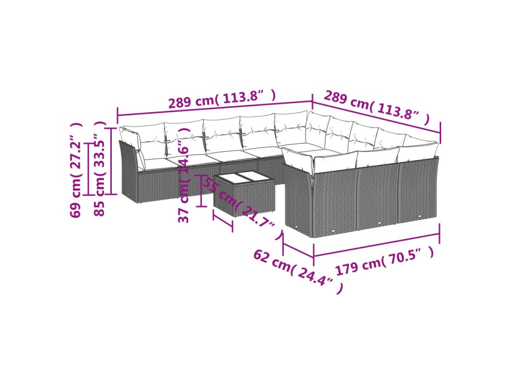 Tato zahradní sedací souprava je dokonalým doplňkem vaší zahrady, terasy nebo dvorku a poskytne vám pohodlné a příjemné místo, kde si můžete povídat s rodinou a přáteli nebo jen tak odpočívat a užívat si pobyt venku.