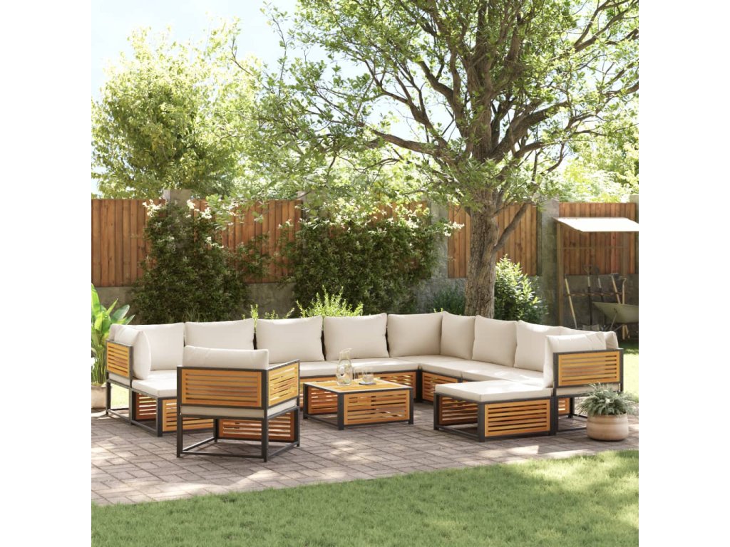 - Robustní a stabilní rám: Masivní akáciové dřevo je známé svou pevností a odolností. Jeho rozmanité odstíny a jedinečná struktura vláken mu dodávají atraktivní vzhled. Vyznačuje se dobrou stabilitou a odolností vůči povětrnostním vlivům, takže je ideální pro výrobu interiérového i venkovního nábytku. Ocelový rám s práškovým nástřikem zajišťuje, že zahradní nábytek je pevný a stabilní pro každodenní venkovní použití.
