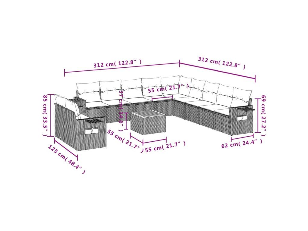 Tato zahradní sedací souprava je dokonalým doplňkem vaší zahrady, terasy nebo dvorku a poskytne vám pohodlné a příjemné místo, kde si můžete povídat s rodinou a přáteli nebo jen tak odpočívat a užívat si pobyt venku.