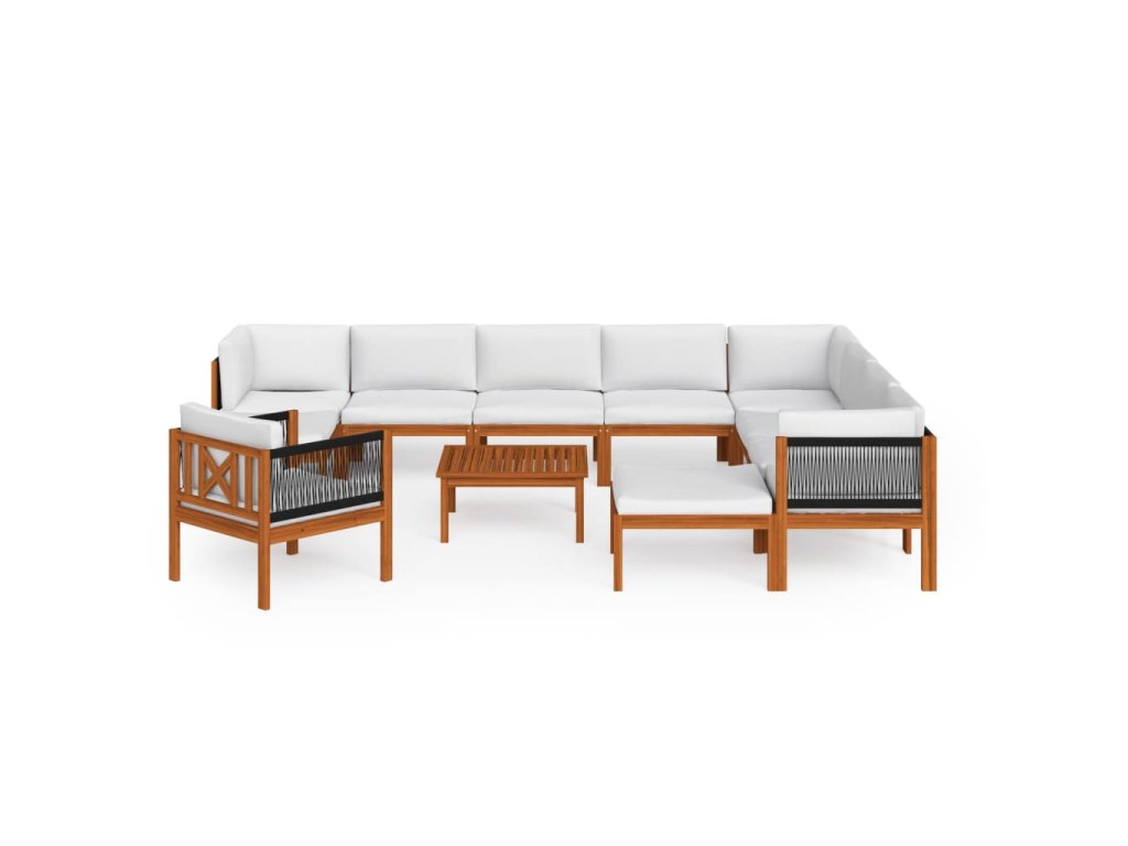 vidaXL 12dílná zahradní sedací souprava s polštáři krémové dřevo akácie a provaz