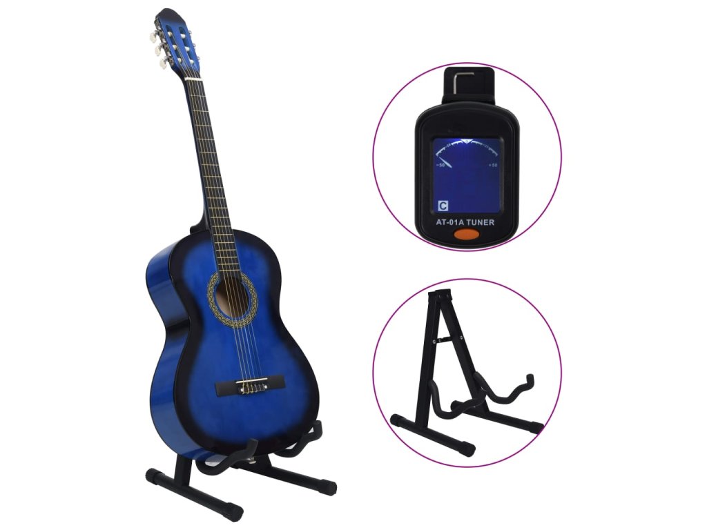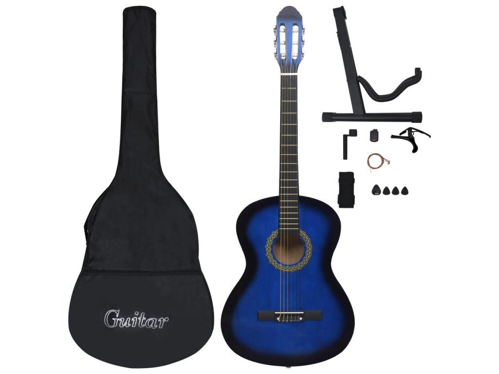 Naše klasická kytara je skvělý nástroj pro začátečníky, amatéry a hudebníky všech úrovní. Balení kromě kytary obsahuje také obal na kytaru, popruh, trsátka, držák na trsátka, set kytarových strun, kličku na struny, kapodastr, elektrickou ladičku a kytarový stojan.